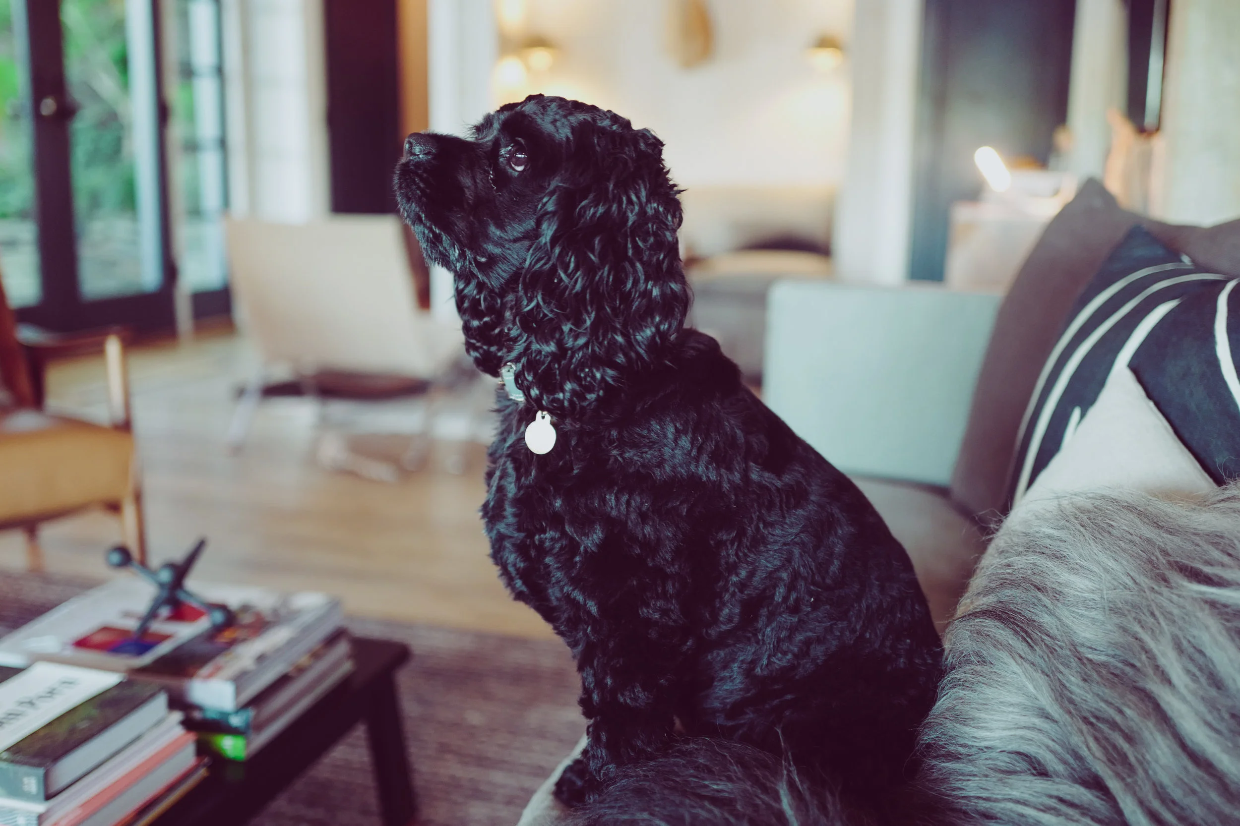 Sasha is a black Cocker Spaniel, and is quite hard to photograph since her fur is so dark. In photographs she can often just look like a black blob with eyes. But, in these photos, I think she looks great. The exposure seems pretty good under various lighting conditions. We've also been teaching her how to swim (she's only 10 months old) so I wanted to get some action shots and try out the faster shutter speeds on the camera. I love the way even the water droplets are frozen.