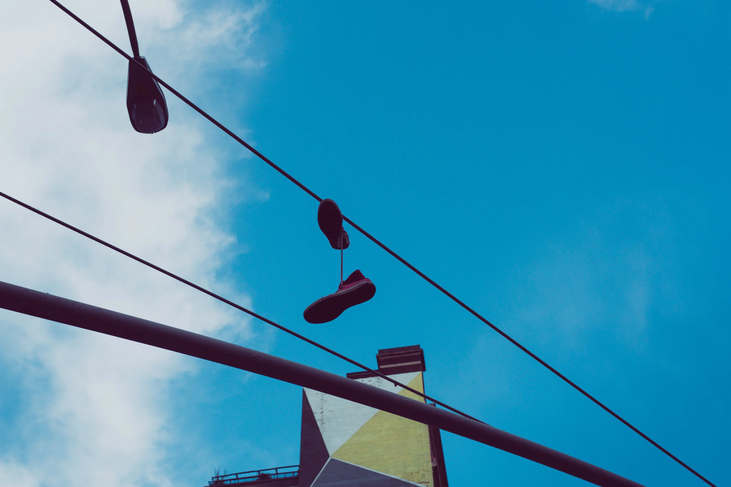 Walking back towards the apartment, I started to spot little things. An old phone booth. Why do they even exist anymore? A row of bikes. Discarded shoes thrown over the power lines. These images are very much the texture of our neighborhood.